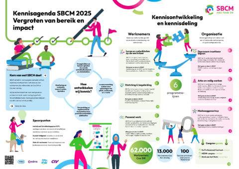 In de kennisagenda ‘Vergroten van bereik en impact’ staat een overzicht van de plannen en activiteiten die SBCM in 2025 uitvoert. Per thema staan de belangrijkste activiteiten benoemd. De thema’s zijn: leren en ontwikkelen op de werkvloer, matching en begeleiding, passend werk, duurzaam inzetbaar blijven, arbo en veilig werken en medezeggenschap. Daarnaast richten we ons in 2025 op twee belangrijke onderwerpen, namelijk het individueel ontwikkelingsplan en sociale veiligheid.