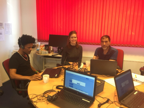 De deelnemers werken alleen op het kantoor van Vluchtelingenwerk aan de programma’s, niet thuis. Dat is een bewuste keuze: zo leren ze ook bepaalde werknemersvaardigheden. ‘Op tijd komen en je afmelden als je niet kunt, dat geldt ook voor de e-learning’, zegt Verschuren. ‘Dat soort vaardigheden leren ze steeds beter.’ Er is ook een inhoudelijke reden. ‘We willen voorkomen dat iemand thuis inlogt en hier zegt: ik ben klaar. We weten dan niet of iemand het echt zelf heeft gedaan.’